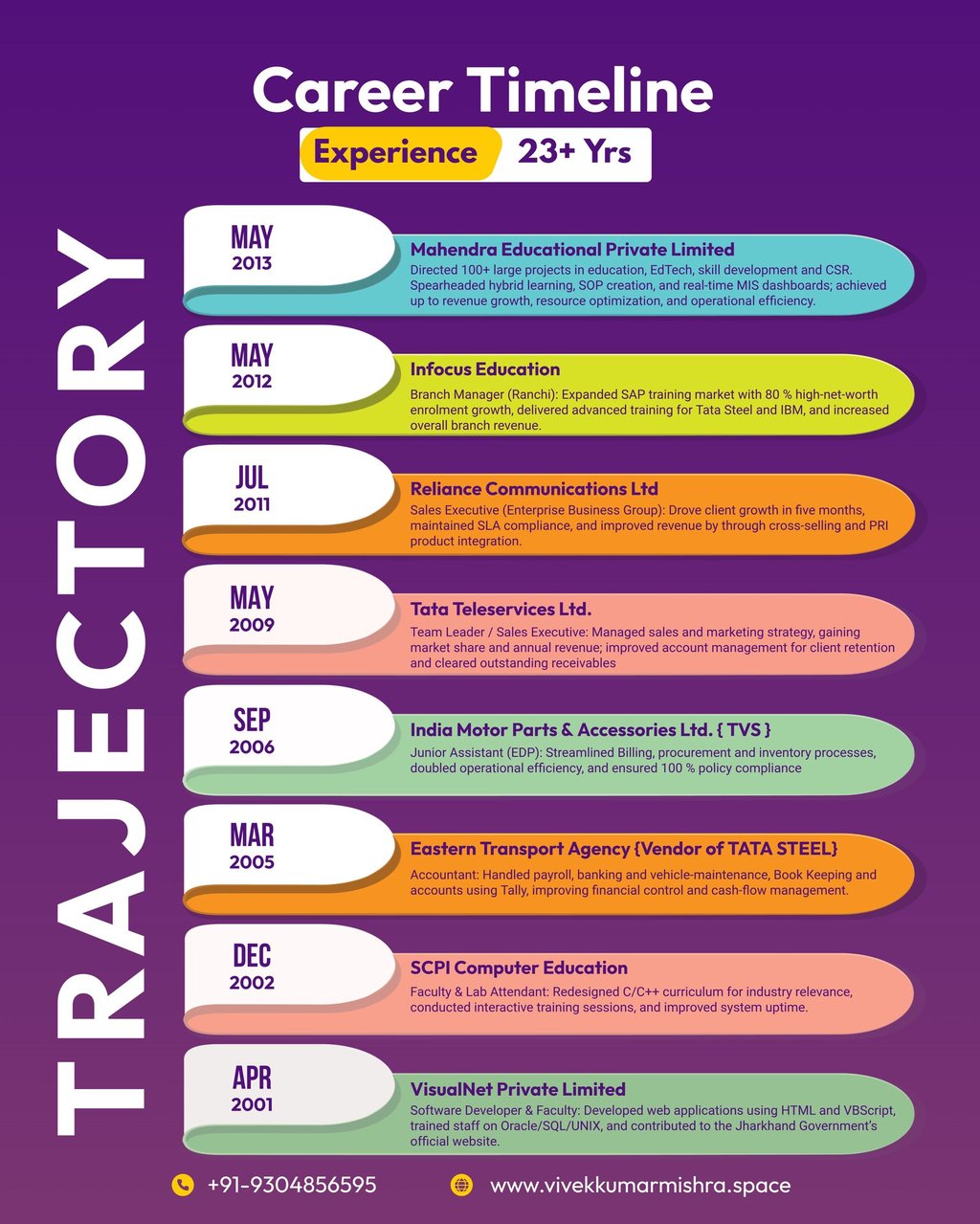 Dynamic professional with 23+ years of experience in Operations, Strategic Planning, Project & Program Management, and Business Development across Education, EdTech, Infrastructure, and Healthcare domains. Proven expertise in leading large-scale transformation projects, driving operational efficiency, and building high-performance teams. Skilled in process re-engineering, public–private partnerships, CSR/Skill Development initiatives, and digital adoption. Recognized for delivering business impact through strategic foresight, financial acumen, and collaborative leadership. Passionate about aligning organizational vision with actionable strategies to achieve sustainable growth.